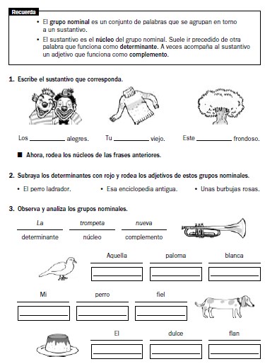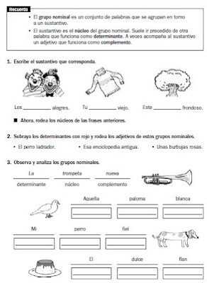 El grupo nominal es un conjunto de palabras que giran en torno a un sustantivo o a un pronombre (núcleo del grupo nominal).